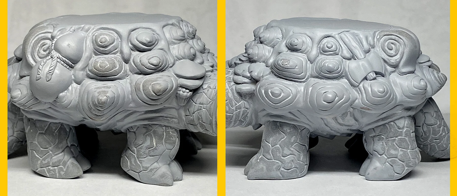 I really love Krackle & Klong. A two headed turtle volcano!?! At the time I made him, for years I just wanted to make that one huge statement piece. It actually took me a couple years of working on him off and on, refining the design. I had actually made a few paintings of what would become K&K over a decade ago.